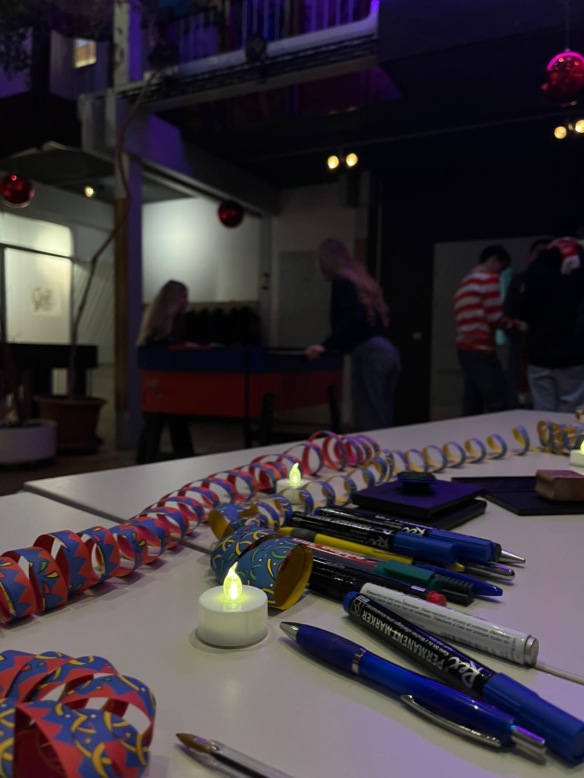 Gegen 16:30 Uhr trafen wir uns dann im Jugendhaus zum Aufbau. Schmuck wurden aufgehängt, der Snacktisch liebevoll vorbereitet und der Eingangsbereich hergerichtet. Stück für Stück verwandelte sich der Raum in eine echte Partylocation. Schon bald kamen die ersten Lehrkräfte vorbei – und pünktlich um 18 Uhr konnten die ersten Gäste begrüßt werden.
