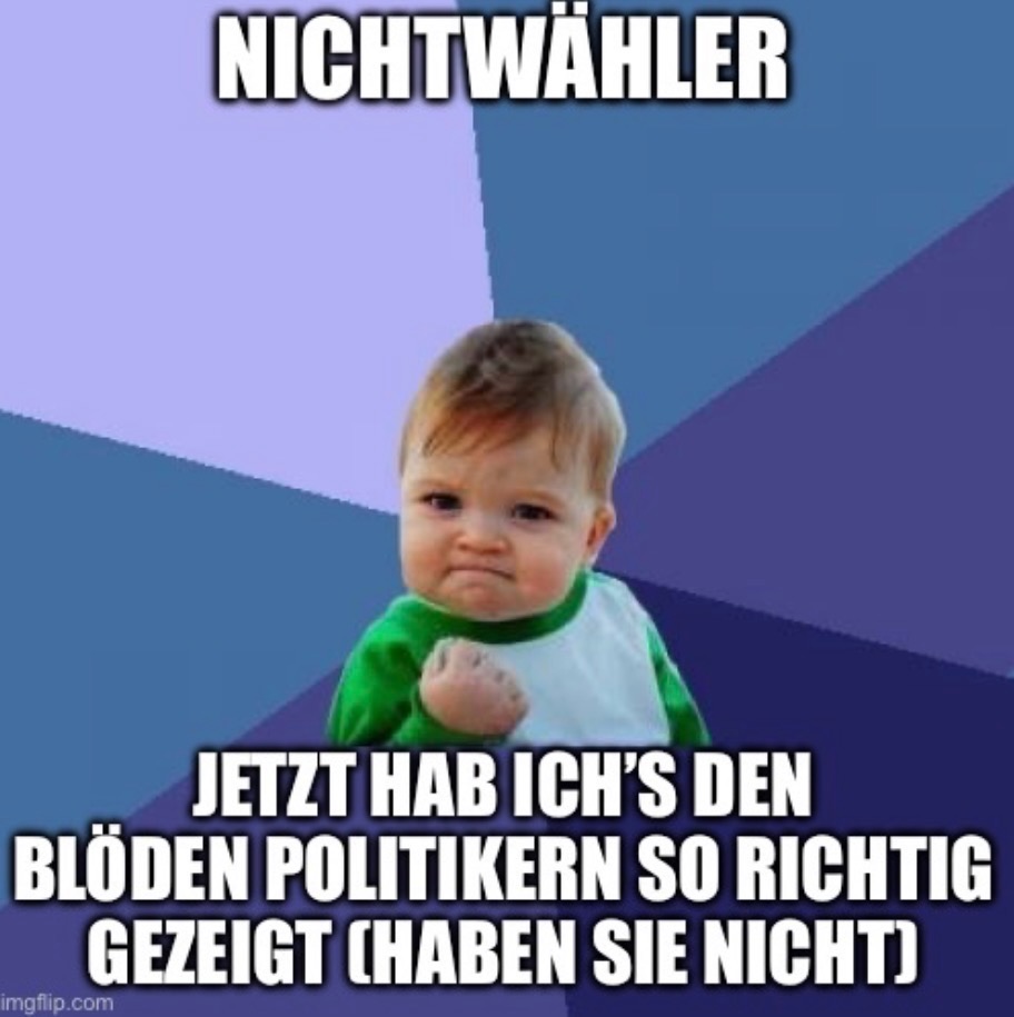 Sich der Wahl zu enthalten wurde in Interviews als Option genannt, um beispielsweise Frust über „die Politik“, Parteien oder die Gesellschaft auszudrücken. Wahlen gelten jedoch als ein zentraler Grundpfeiler unserer Demokratie. Eine nicht gleichmäßig verteilte Nichtwählerquote führt unter anderem dazu, dass bestimmte Bevölkerungsgruppen oder Menschen einzelner Stadtteile weniger stark repräsentiert werden. Mit der Bedeutung von Wahlen im Hinterkopf hat sich ein Gemeinschaftskundekurs der Kursstufe 2 damit beschäftigt, wie man auf humorvolle, ironische Art zur Wahlteilnahme und zum Nachdenken animieren kann. Passend zur Landtagswahl am Sonntag hier eine kleine Auswahl der Ergebnisse.
