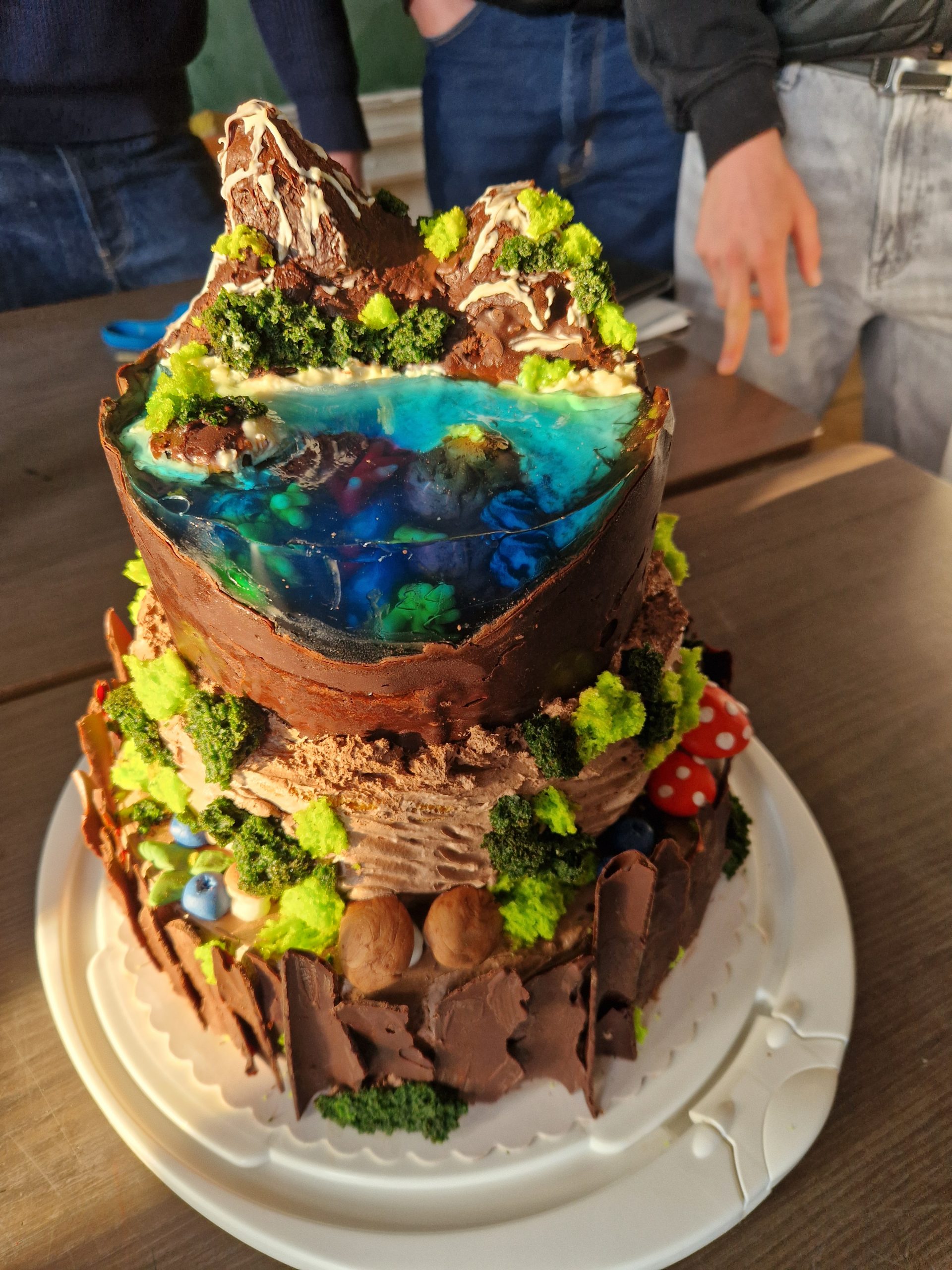 So entschied sich ein Schüler der Kursstufe 1 für einen besonderen Zugang: Er gestaltete im Rahmen seiner GFS ein Werk aus dem Bereich der Eat Art – einen vollständig essbaren Kuchen. Mit viel Kreativität und handwerklichem Geschick entstand ein Kunstwerk, das nicht nur visuell überzeugte, sondern auch neugierig machte.